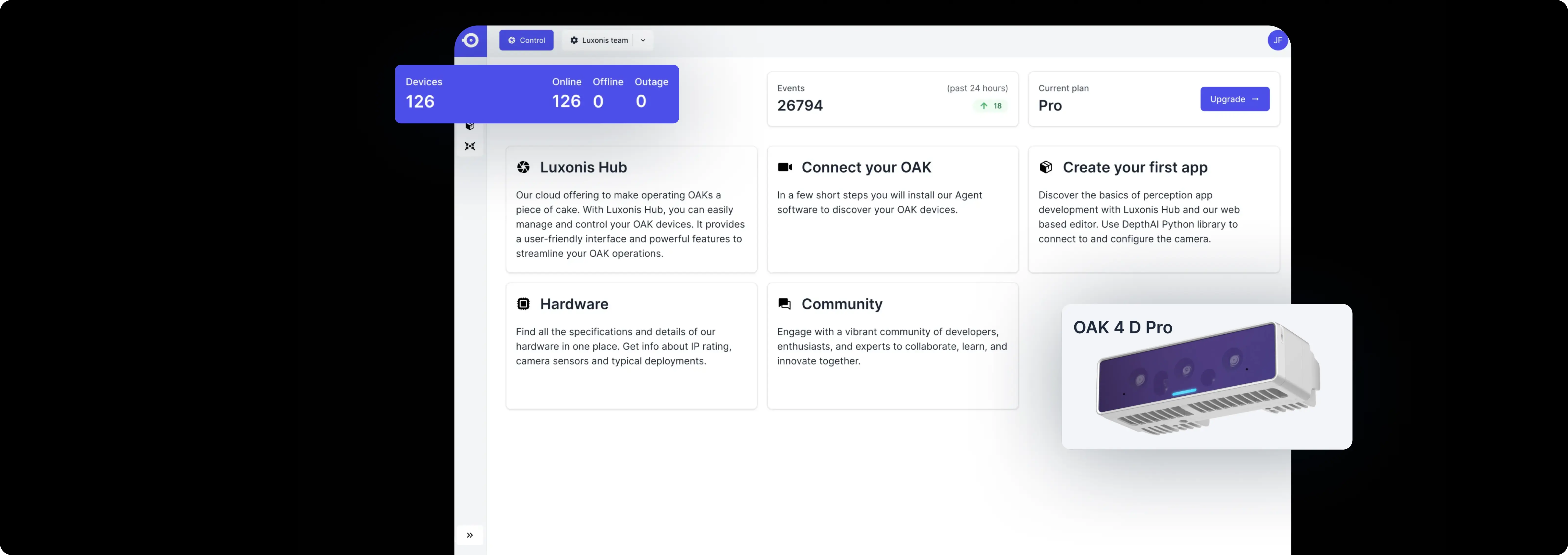 Managing multiple vision devices, models, and deployments is complex. Luxonis Hub brings everything into one platform - device control, model rollout, real-time monitoring, and continuous optimization. Whether you manage one device or thousands, Hub gives you the reliability and scale you need.