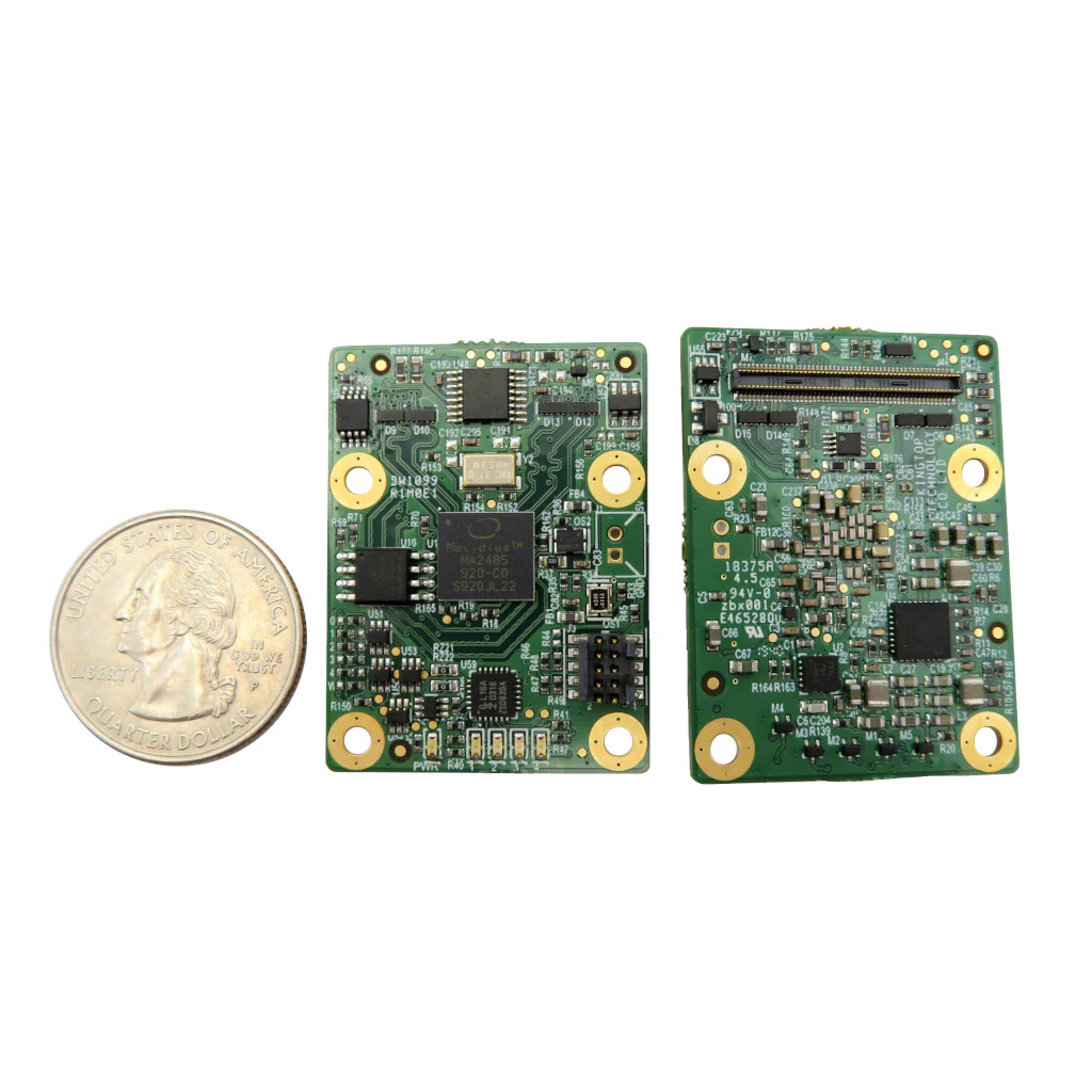 On-device AI and real-time compute: DepthAI handles image rectification, compression, and feature detection right on the camera, ensuring low latency performance with minimal connectivity.